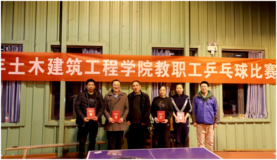 为丰富学院全体师生的文化生活,营造健康文明、积极向上的学院工作氛围,在学院党委的指导下,学院工会的大力支持下,2020年12月2日晚7点,必赢bwin官网教职工乒乓球比赛在桂圆风雨体育馆顺利举行。校工会文体部王佳部长、土建学院刘泉声院长为比赛致辞,学院副院长胡衡、吴志军、党委副书记李海燕、谢献谋亲临现场为运动员加油助威,近40名参赛教职工为现场观众呈现了一场热闹、激烈的乒乓球赛事。